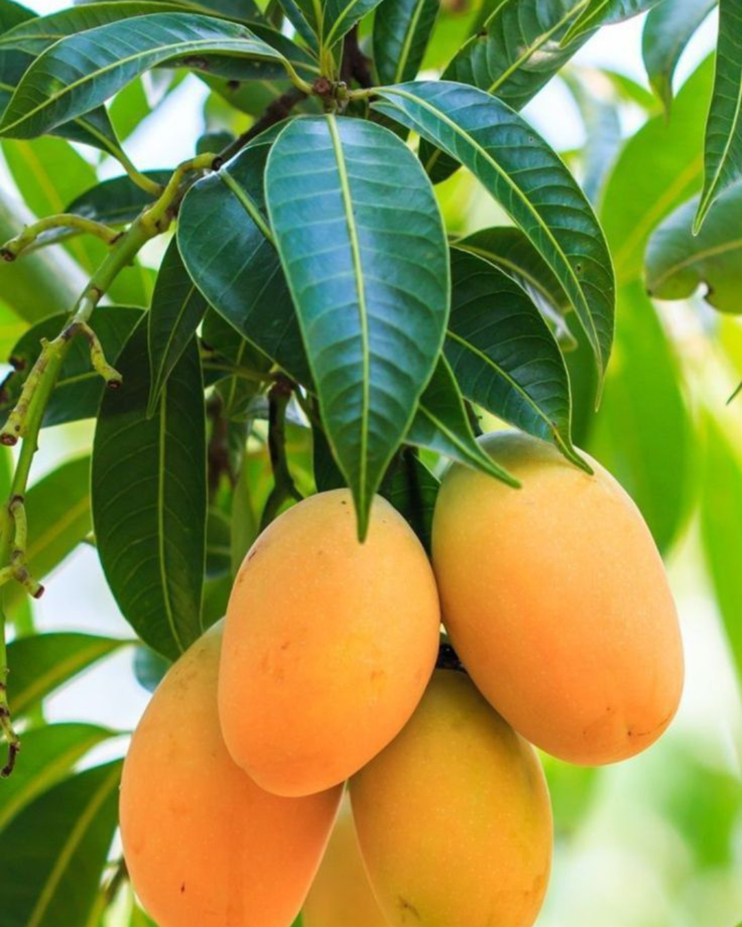 The Mango tree is a large, evergreen tropical tree known for its dense green foliage and strong trunk. It grows well in warm climates and has a long lifespan. The tree develops broad leaves and is widely cultivated across tropical and subtropical regions for its healthy growth and sturdy nature.